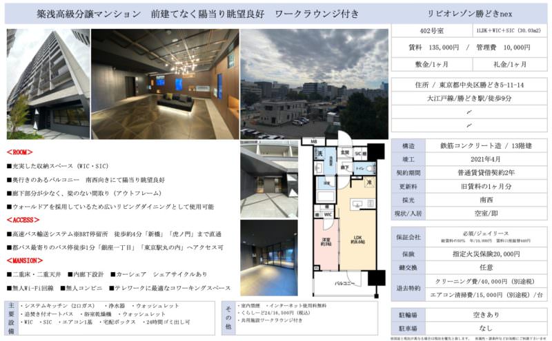 物件情報 管理物件ピックアップ リビオレゾン勝どきnex 新規受託/募集開始 よく読まれている記事 退去時のハウスクリーニング費用:誰が払うべき?裁判例から学ぶ 賃貸での法人登記を許可すべきか?法人登記による賃貸物件のリスク 壁紙の少しのめくれ・破れの原状回復問題 フローリングの原状回復:経年劣化が考慮されない? 壁紙・クロスの原状回復のルール: 耐用年数と費用算出の勘違い
