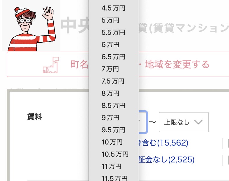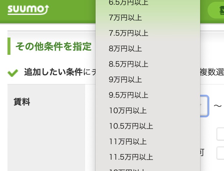 さらに、suumoもアットホームも賃料が5,000円刻みの選択となります。