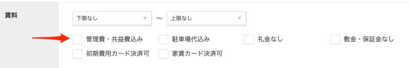 「管理・共益費込」「管理費等を含む」というチェックボックスがあります。