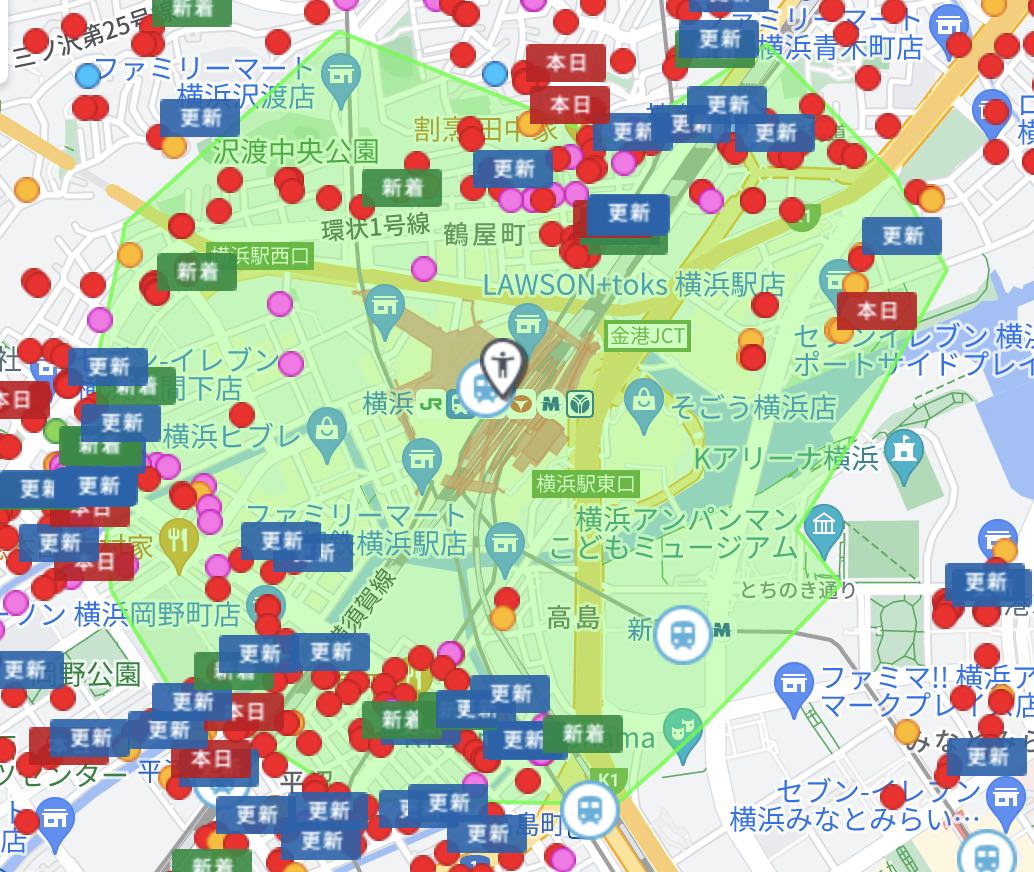 これだけで何かがわかるわけではありませんが、横浜駅周辺の住むところの少なさというのは伝わったことでしょう。