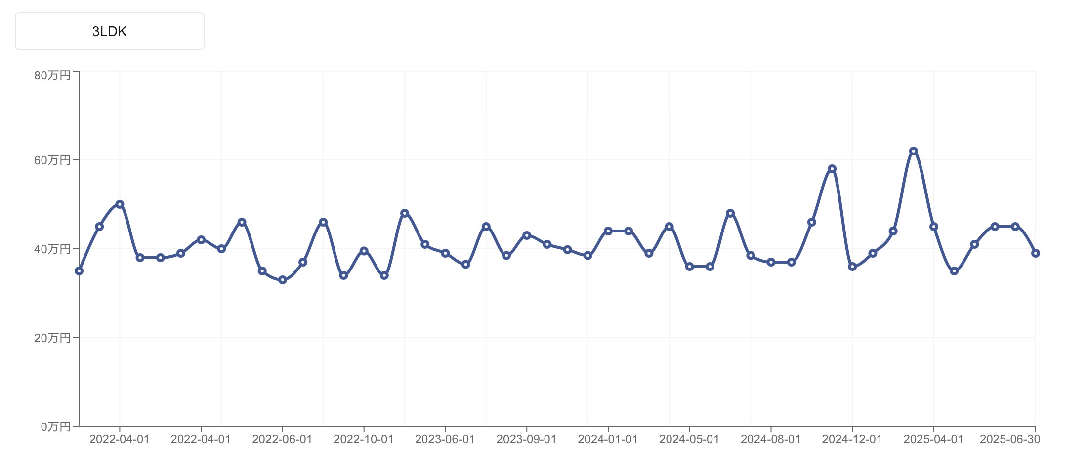 グラフを見ると、間取りごとの分布ゾーンが明確になっているのが特徴です。