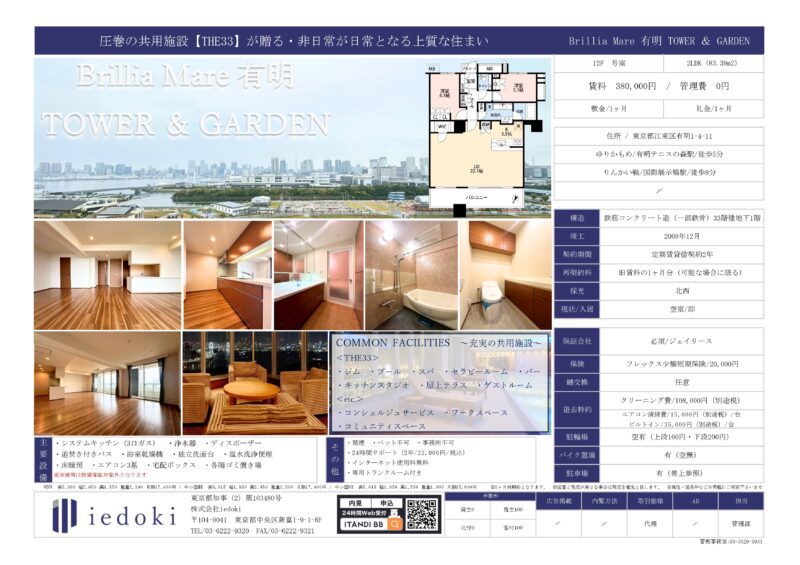 83㎡超のゆとりと、圧巻の共用施設「THE33」を備えた有明を代表するタワーレジデンス。