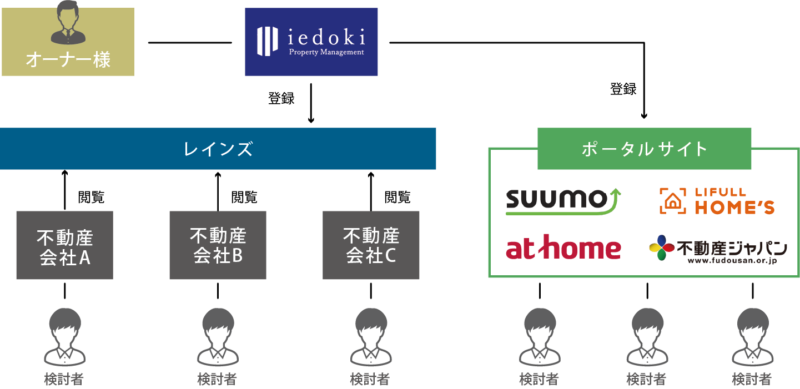 業者間サイトやSUUMO等のポータルサイトにて幅広く広告活動をおこないます。